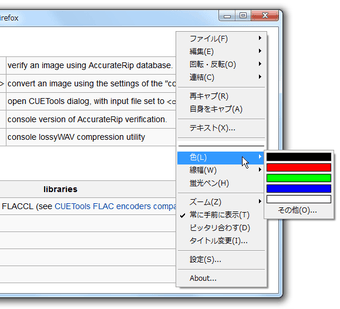 画面をキャプチャーする際に、コントロールキーを押しながらカーソルをドラッグすることで、画像上でペンを使ってお絵かきすることが出来ます。テキストなどを挿入することも出来るので、飾り付けやキャプションなどを簡単につける事が可能です。またキャプチャーした画像を反転・回転させることもでき、様々な編集が可能です。