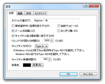 PCデフォルトのキャプチャー操作の場合、キャプチャーしたものを一旦画像編集ソフトに貼り付ける作業が必要です。しかしRaptureでは、その都度画像編集ソフトを立ち上げなくても、キャプチャー画像を決まった形式(BMP、JPG、PNG)で、好きなフォルダに保存することが可能です。